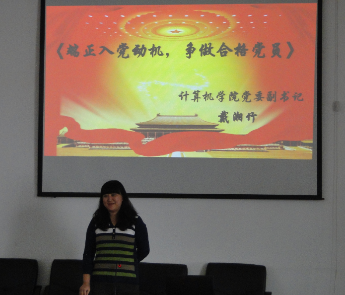 2013年10月22日中午12:15,计算机科学与技术学院2013年下半年入党积极分子集中培训班开班仪式如期举行,本次党课的主讲人是我院党委副书记戴湘竹同志。