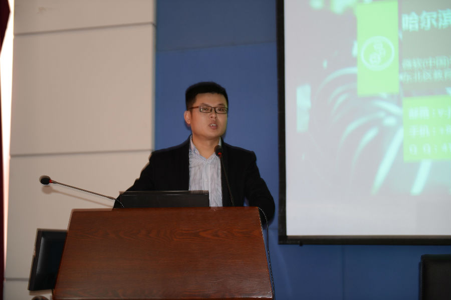 在学术交流环节,孙坚经理从微软公司在中国的业务、微软技术实践中心、微软实训平台、微软认证中心、微软IT学院等方面介绍了微软公司的相关情况。他通过丰富多彩的图片和视频向大家介绍了微软的理念、高校人才培养合作框架、创新技术体验中心和成功的校企合作案例等。孙经理的报告给与会人员带来了全新的技术体验,增强了大家对微软的了解,使大家开阔了眼界。