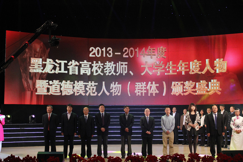 “他们以春蝉之心,行师者之道”,“龙江学子举力善行,高校品格耀然北疆”。22日,由省委宣传部、省委高校工委、省教育厅、省文明办、团省委、省电台联合举办的2013-2014年度全省高校教师年度人物、大学生年度人物暨道德模范人物(群体)颁奖典礼在东北农业大学音乐厅举行。省委常委、宣传部长张效廉出席颁奖典礼。我校机械学院刘献礼老师获高校教师年度人物奖,软件学院2011级学生姜妍获大学生道德模范人物奖。我校副校长孟上九作为颁奖嘉宾出席颁奖典礼。本次颁奖典礼通过“榜样的力量、最好的未来、我的志愿、春暖花开”四个部分分别介绍龙江高校榜样的最美瞬间,颁奖典礼寓情于景,以情动人,生动展现年度人物和道德模范人物感人至深、催人奋进的先进事迹。