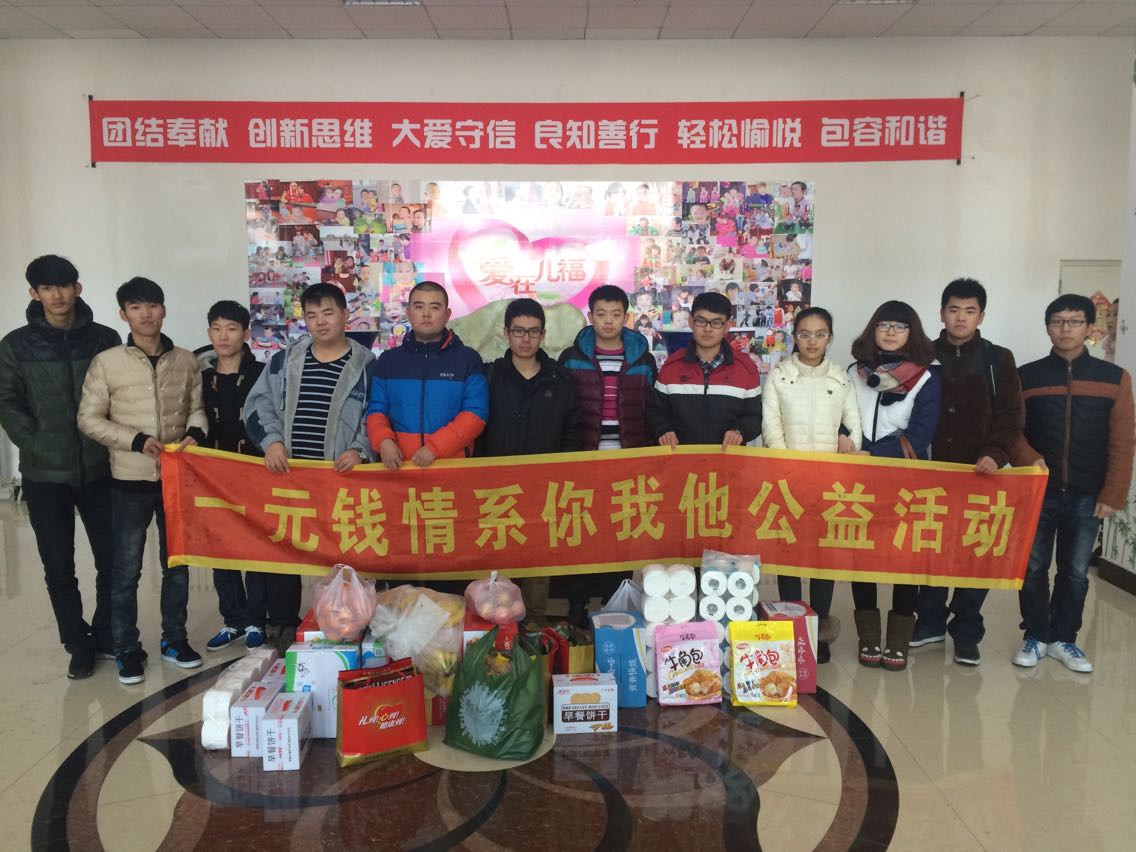 12月上旬,哈尔滨理工大学软件学院理论研究会举办了“一元钱情系你我他公益活动”, 本次活动目的是引导更多的大学生关注社会,关爱孤儿,传递温暖与爱心,软件学院理论研究会全体同学参加了此次活动。