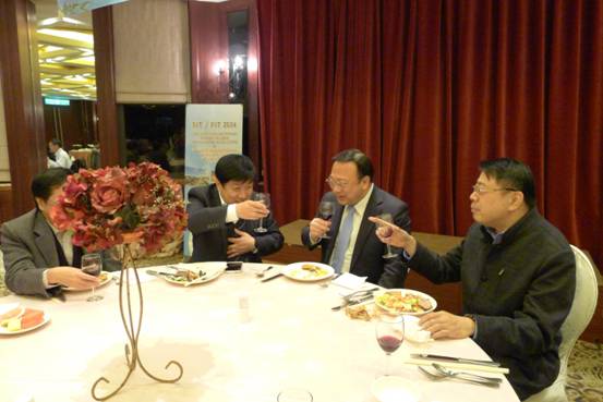 12月3日下午,孙名松教授一行抵达台湾后,首先看望了我校赴台交流学习的学生并与学生们进行了交谈。台湾中华大学国际合作处陈俊宏执行长及张燃珠老师出席了座谈会,对我校赴台学生在台表现给予了高度评价。座谈会上学生们踊跃发言,详细介绍了他们在台期间的生活和学习情况,畅谈了赴台后的不同感想和收获。孙名松教授和李鹏教授对我校学生的在台的表现深感欣慰,并对其提出了殷切的希望,希望他们在台期间能够刻苦学习,为我校争光。在FIT 2014欢迎晚宴上孙名松教授一行会见台湾中华大学刘维琪校长和郑芳炫副校长,就两校进一步合作进行了交谈。