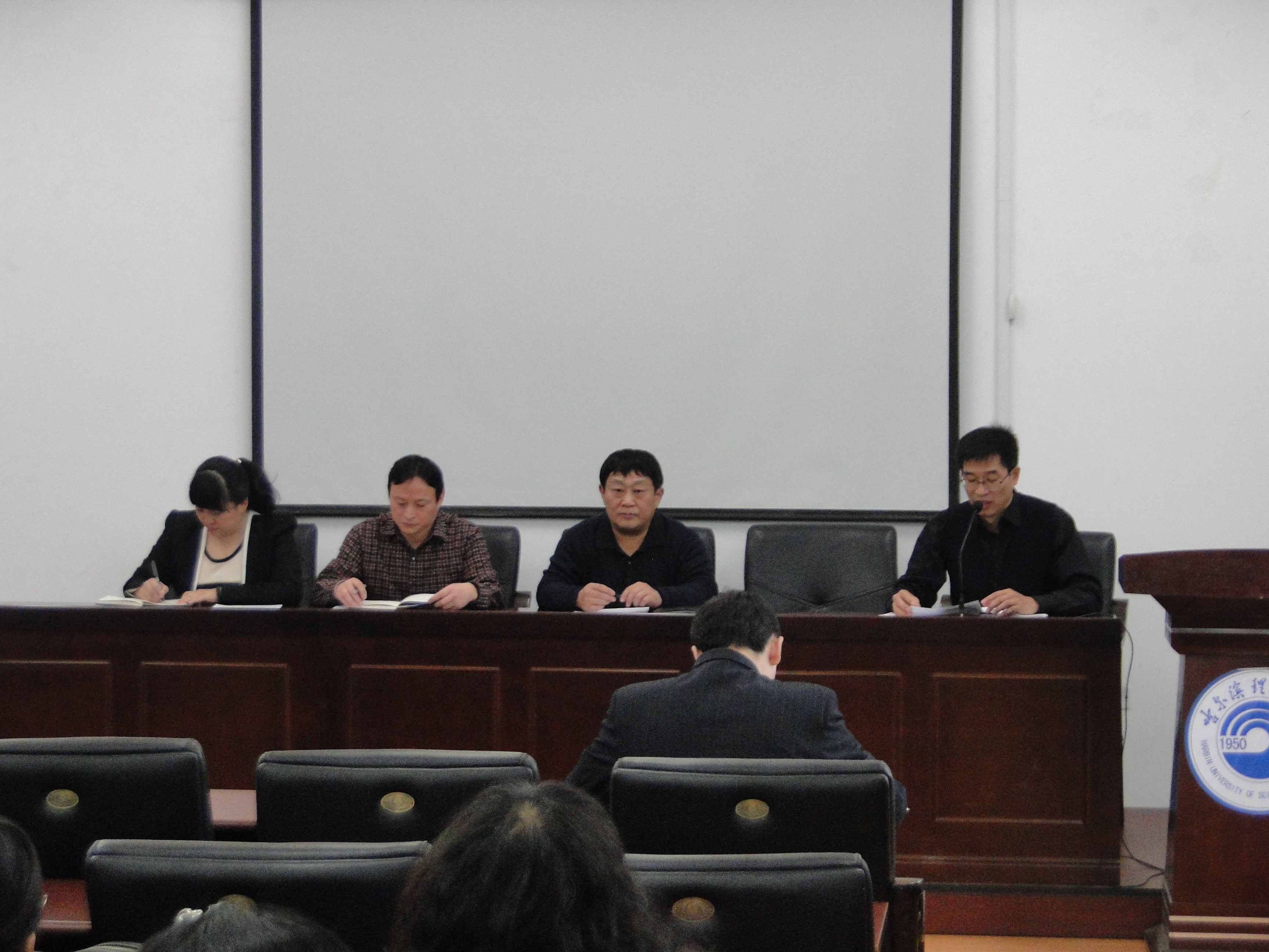 随后,副院长唐远新主要就本科教学管理水平评估专家组反馈意见与整改措施;2015版培养方案修订过程以及期末考试相关工作做简单部署。分党委副书记戴湘竹就寒假期间学生管理相关事项强调了几点要求,特别针对研究生的假期管理工作,向各位导师进行通报。