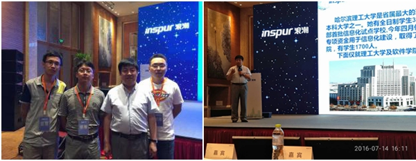 7月14日,软件学院院长孙名松教授和学院崔建磊老师及部分网络实验室学生一行人,参加了由浪潮集团在哈尔滨市万达索菲特大酒店举办的主题为“计算+智慧云动力”的2016浪潮创新数据中心产品及方案哈尔滨站巡展。