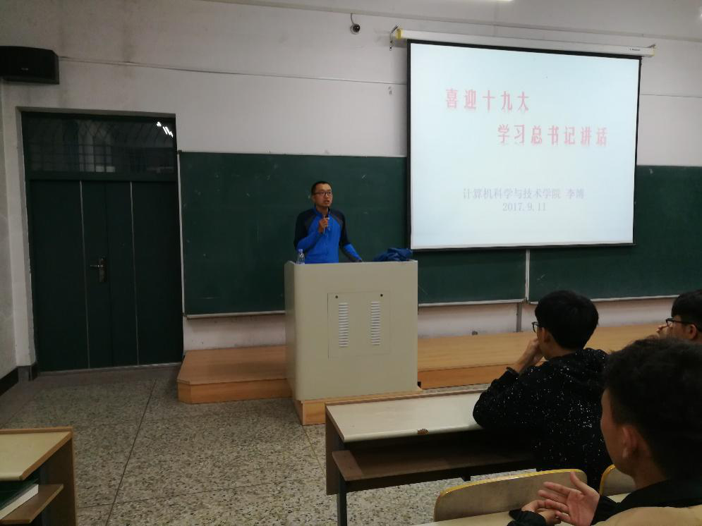 9月11日18点,我院2017级新生中举行“喜迎十九大、学习总书记讲话”系列活动,辅导员李博老师做了主题发言。
