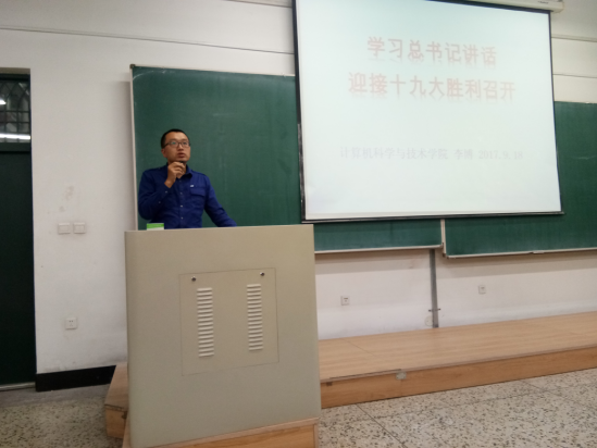 9月18日18点(实习记者 王思卿),计算机科学与技术学院2017级新生在J501教室举行了新生团员培训,由大一新生赵雅楠主持,辅导员李博老师发言。
