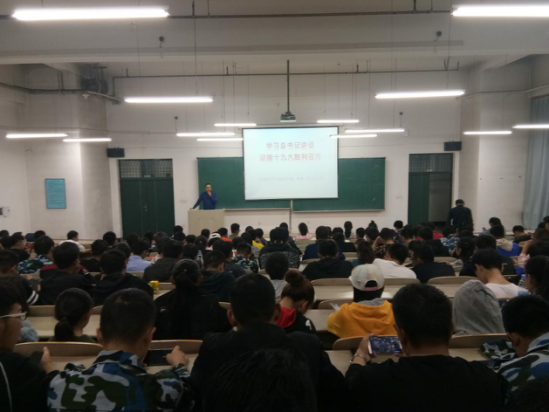 首先,李博老师就十九大召开和学习“习近平总书记系列讲话”的重要性进行了详细讲解,告诉同学们正确认识时代责任和历史使命,用中国梦激扬青春梦,点亮理想的灯、照亮前行的路,激励同学们勇做奋进者、开拓者;正确认识远大抱负和脚踏实地,把远大抱负落实到实际行动中,让勤奋学习成为青春飞扬的动力,让增长本领成为青春搏击的能量,同学们平时要通过新华网、学习中国等网站、APP学习总书记讲话,做社会主义的合格建设者和可靠接班人,以优异的成绩向十九大献礼。