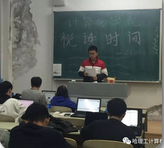 在校团委和学生处的统一部署下,10月23日计算机学院正式启动“悦读时间”活动,将每周一的晚自习时间作为“悦读时间”的分享会,以班级为单位,每个班级分成5个小组,同学们在小组中进行一周以来的阅读精品书籍的分享活动,分享后小组推选出一名同学在班级进行分享自己的读书体验和小组的分享成果。经过一个星期的动员和准备工作,10月30日晚在学生们的晚自习教室,“悦读时间”正式开始。
