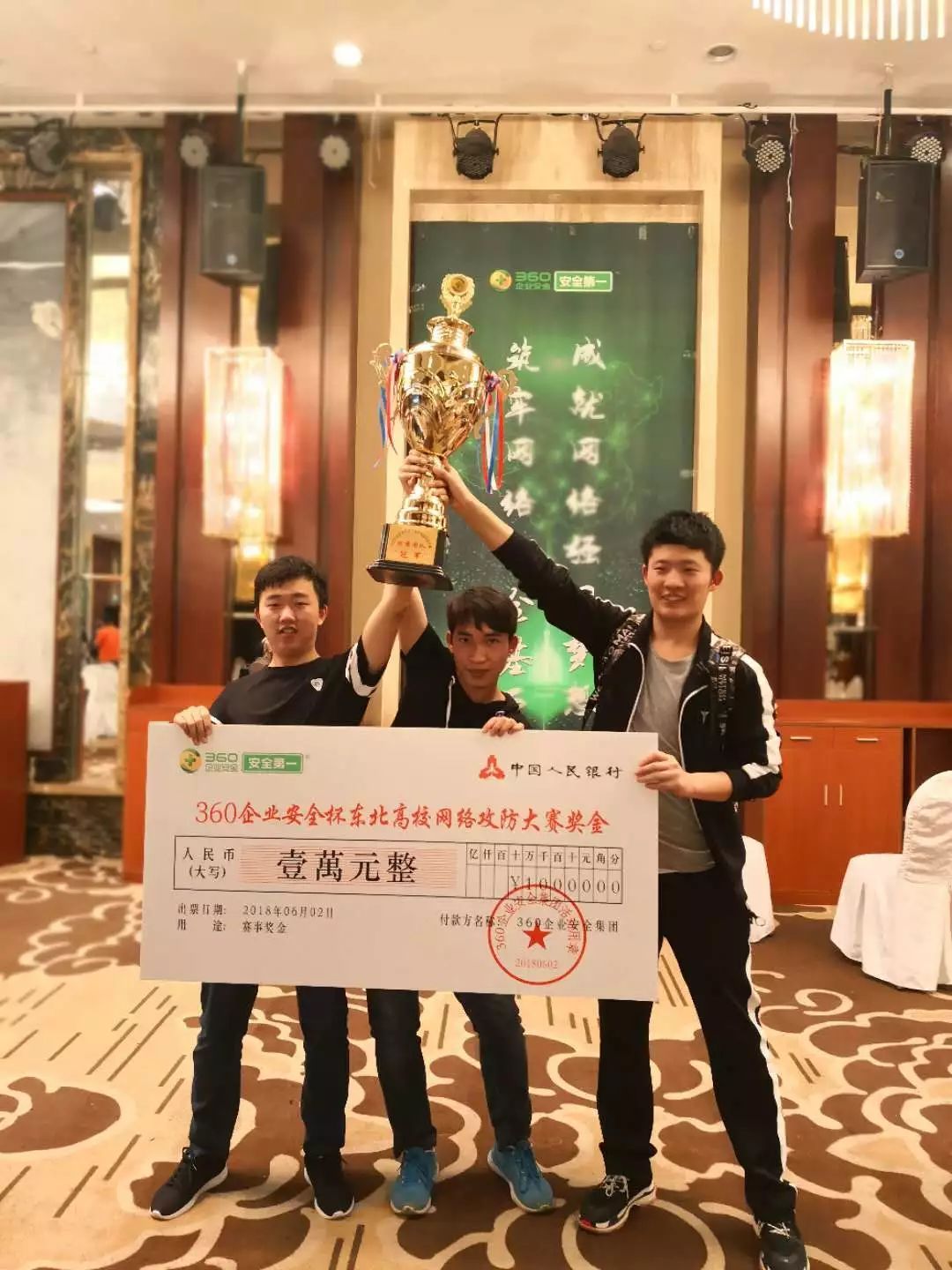 由中共大连市委网信办指导,大连网络安全人才与创新基地、360企业安全集团承办的“360企业安全杯”东北高校网络攻防大赛6月2日在大连星海会展中心举行,21所东北三省高校的33支竞赛战队共141名选手参赛。网络15-3班李鸿鹄、土木15-4班王晗和网络16-4班陈晓壮组成的我校代表队通过个人基础题比赛、技能题比赛、团体夺旗比赛等环节,获得个人成绩第二名、团体冠军的好成绩,并获得1万元奖金。在团队夺旗赛中,我校“土豆土豆我是番茄”战队在第一轮失利的情况下,变被动为主动,在第二轮和第三轮的比赛中主动发起攻击反超第二名150多分。在第四轮中成功利用新的漏洞发起攻击,在第五轮和第六轮的比赛中攻防策略设计有效得当,稳定发挥,最终以总分3600的好成绩取得本次比赛的冠军。