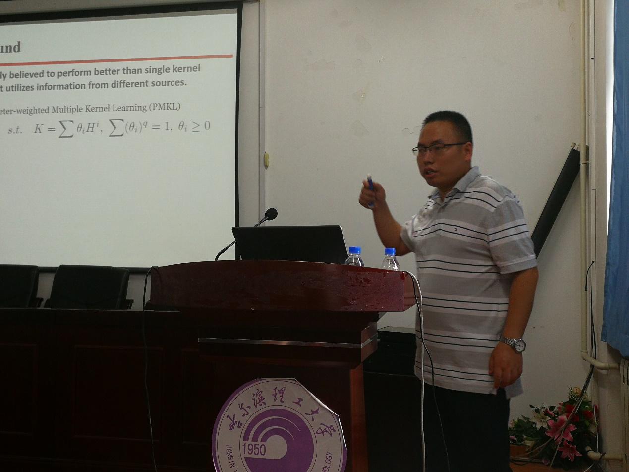 为促进我校师生在人工智能前沿领域方面的学术研究,计算机科学与技术学院于2018年6月25日在新主楼15楼E1523会议室举办了“人工智能前沿领域学术报告会”。受计算机学院副院长孙广路教授、李骜博士的邀请,电子科技大学康昭博士、美国南伊利诺伊大学彭冲博士、中科院计算所王晋东博士分别进行了机器学习方法及其在计算机视觉应用方面的学术报告。报告会共有60余名师生参加,机械动力工程学院刘献礼教授也参加了报告会。