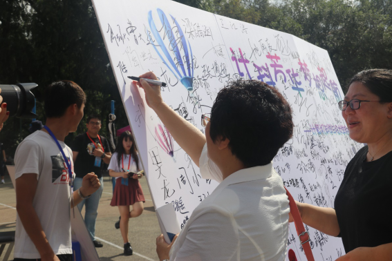 校党委副书记陆岩在迎新签名板签名留念