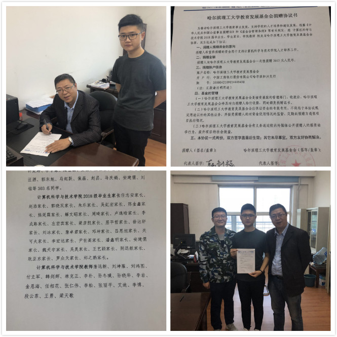 值此教师节来临之际,计算机学院学生以别样的礼物为全体老师送上了最衷心的祝福。上午10点,学院2018届毕业生代表李子豪与学院教师代表韩剑辉老师一同前往校友办,在原年级辅导员刘鸿图老师的见证下向学院捐赠3665元用于支持学院人才培养工作。该笔捐赠款是2018届毕业生募集《荣耀与梦想》制作经费结余,是来自近400位2018届毕业生、学生家长及学院教师的爱心捐赠。同时,还将《荣誉与梦想》留念书籍电子版赠与学院全体教师,并在年级QQ群中发起了“祝母校所有老师教师节快乐!”的留言墙。2018届毕业生通过这三份别样的礼物,表达了离校学子对母校和老师们的深深眷恋。