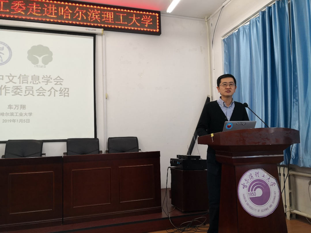 为促进我校师生在人工智能前沿领域方面的学术研究,更好地建设“黑龙江省智能信息处理及应用重点实验室(筹)”,哈尔滨理工大学计算机科学与技术学院联合中国中文信息学会,于2019年1月5日在新主楼15楼E1523报告厅举办了“人工智能前沿领域学术报告会”暨中国中文信息学会走进哈尔滨理工大学活动。