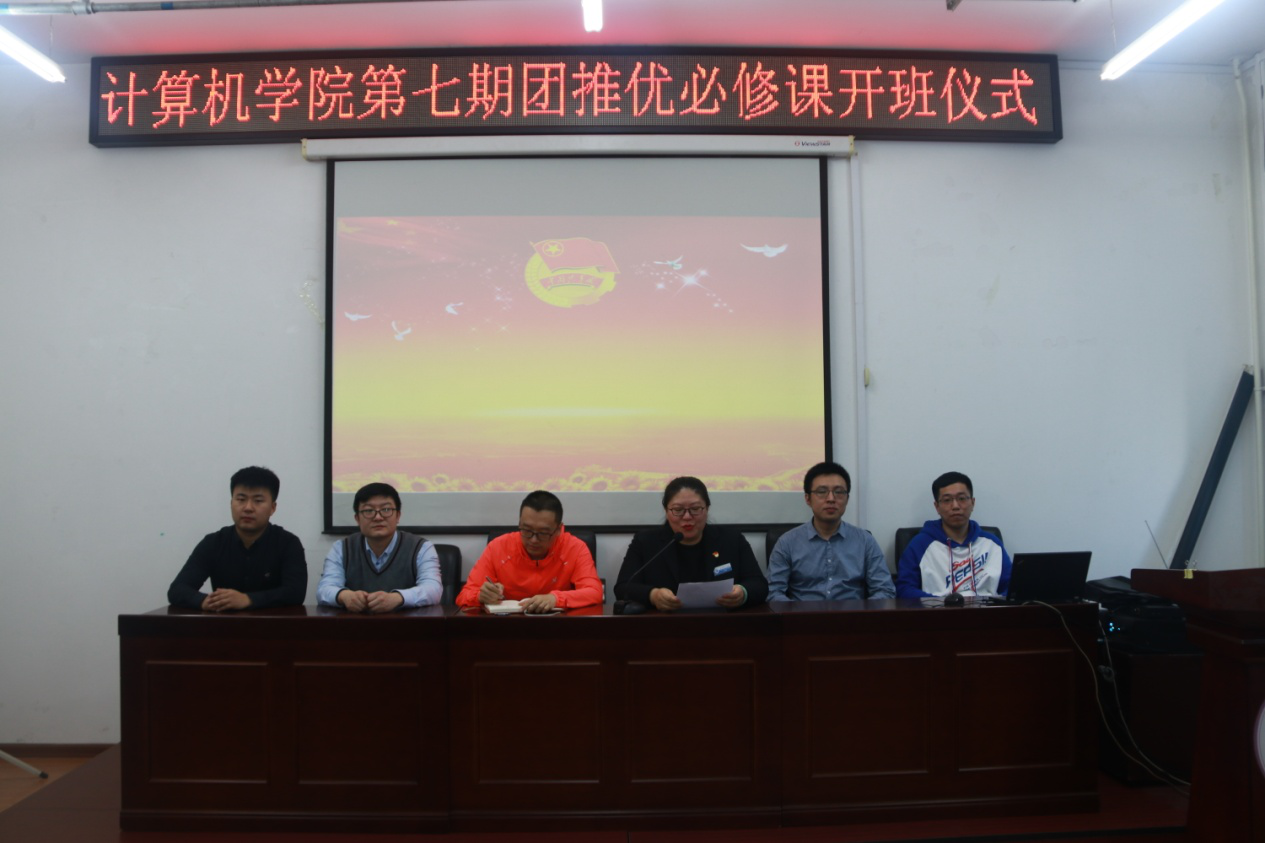 4月11日中午12点30分,在嘹亮的国歌和团歌声中计算机学院团委第七期“团推优必修课”开班仪式在计算机学院报告厅举行,学院党委副书记刘坤雁出席本次的开班仪式,105位入党积极分子参加,开班仪式由学院团委书记艾荻主持。