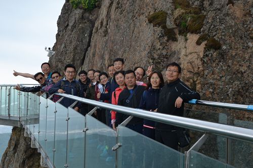 当日上午天气多云,气温适宜;帽儿山景区风景秀丽,空气清新。上午10时许,30多名教职工统一乘车来到帽儿山山脚,精神抖擞地向山顶进发。帽儿山虽然海拔不高,但树木丛生、山坡陡峭,狭小的台阶更为徒步登山带来了不小困难。登山途中,教职工们互相帮扶,不断为对方加油鼓劲,处处体现了积极向上、顽强拼搏的精神风貌。登山的过程是艰苦的,但也有乐趣相伴。山上绿树成荫,怪石林立,山下虫鸟和鸣,水声潺潺。峭壁攀岩、高山滑索等刺激的娱乐设施更是令人眼前一亮。经过大约一个半小时的攀登,大家陆续抵达距离山顶不远的休息平台,短暂停留后,继续向山顶的玻璃栈道进发。站在玻璃栈道上登高望远,层峦叠嶂,郁郁苍苍,一切尽收眼底。大家纷纷在山顶合影留念,在朋友圈中与亲朋好友一同分享登顶的喜悦。下午3时许,大家踏上了返程的大巴,虽然双腿早已酸痛,但大家的心情是愉快的。看似平常的一次登山活动,不仅让大家领略了的大自然的美,还让大家感受到了不轻言放弃,勇敢拼搏的魅力。