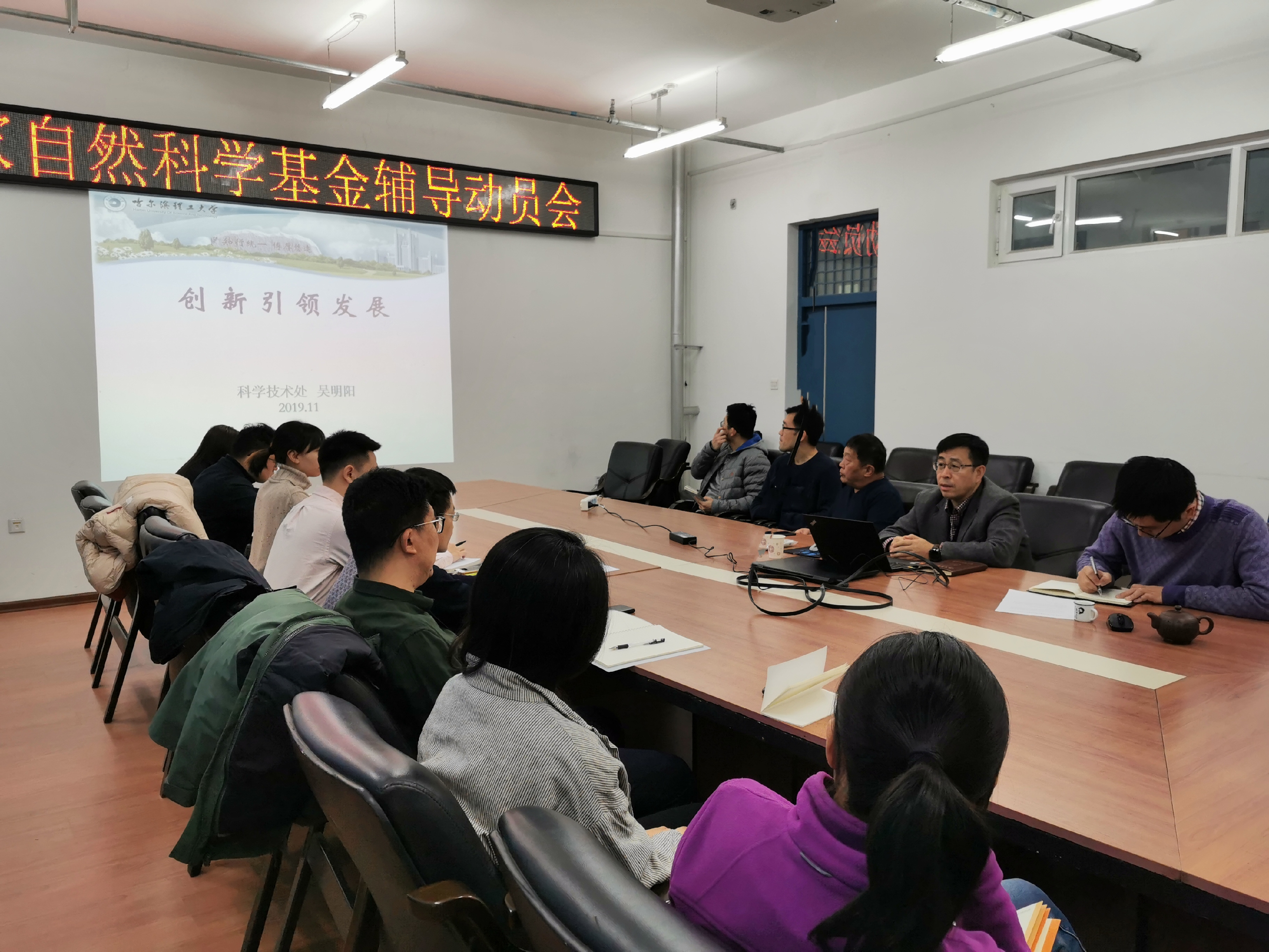在报告会上,吴明阳处长从科技形式发展概述、国家和地方科技计划简介、近三年国家自然科学基金申请与资助情况、2020年基金申请注意事项等四个方面做了专业而细致的讲解与分析。