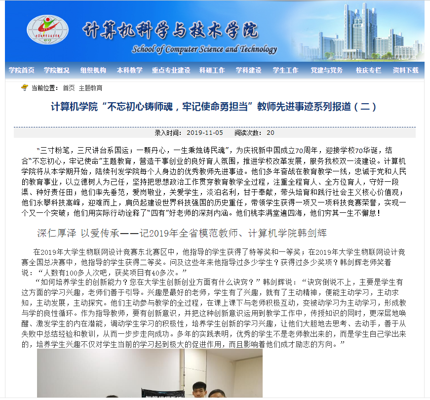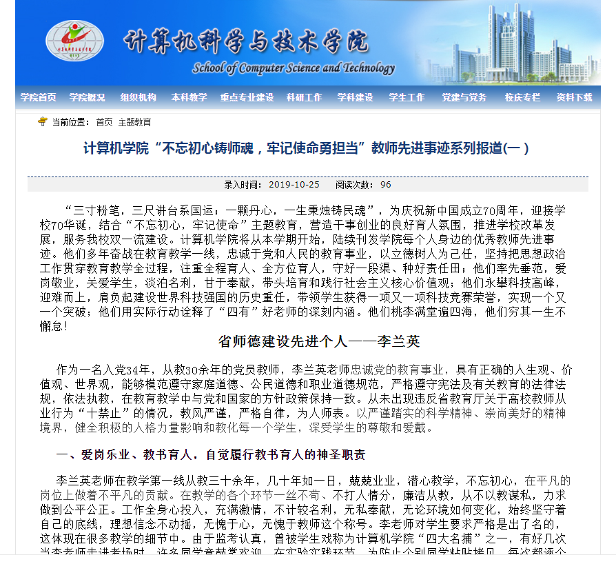 一、针对“如何发挥党员教师的示范引领作用”的问题,学院党委充分挖掘身边典型,以榜样的力量引领和带动广大党员广大教师践行使命担当,牢记宗旨意识,发挥先锋模范作用。计算机学院党委利用网络平台,在学院网页上单独开设主题教育专栏,并对于学院涌现的一批“不忘初心铸师魂,牢记使命勇担当”的党员教师典型进行宣传报道,在全院上下营造人人推崇典型,人人学习典型的良好氛围。