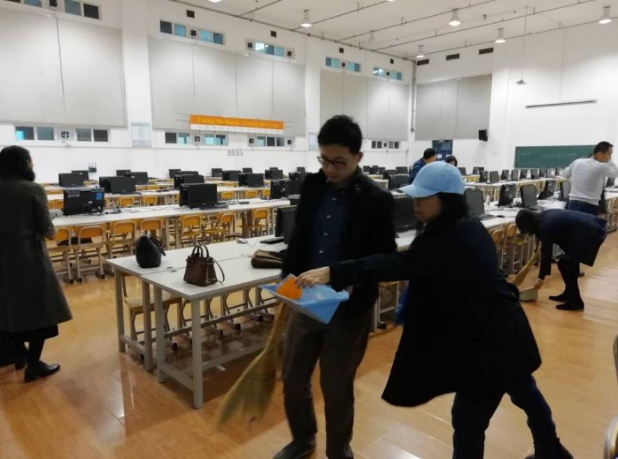 二、针对“如何强化党员干部和教师的宗旨意识 ”问题,各教师党支部坚持将为民服务落到实处,切实帮助广大师生解决实际问题。计算机学院机关党支部的各位学院班子成员,着力开展体验式调研,深入到各个系部,广泛听取教师们反应的意见,回应广大教师的关切。机关党支部的成员为节约学校经费自己动手将学院报告厅、会议室和党员之家的破损座椅全部修缮一新,为学院节省下万余元的维修费用,以实际行动为广大师生提供便利,在点滴小事中彰显服务师生的真情。计算机系党支部,在主题教育期间安排了多场主题党日活动,针对系列大型实验室卫生清扫困难等实际问题,帮助系里李岳华老师对于486平米的学生综合训练实验室进行全面清理,共同为学生营造良好的学习环境。网络系党支部,在主题党日活动中帮助系里年龄最长且活动稍有不便的郭锦兰老师对于200平米学生实验室进行打扫,以实际行动来帮助师生排忧解难。