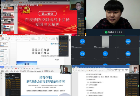最后,学院党委书记张殿龙,首先传达了我校纪委关于线上授课有关纪律的提醒。随后,对于我院各部门工作精心筹备,取得的成绩给予充分肯定,他指出,从假期到现在,各系(中心)、两办都做了大量系统的工作,保证我院的疫情防控工作和线上教学工作有条不紊的进行,特别是学院党员,自2月14日我院党委发布了《致学院党员的倡议书》之后,学院党员率先垂范,积极配合学校、学院的各项疫情防控工作,起到了良好的带头作用。学院各党团组织,画好齐力战疫的“同心圆”真正发挥战斗堡垒作用。张书记还就接下来的工作提出了要求,第一,统一思想,提高政治站位,要继续高度重视疫情防控工作,不放松,不懈怠,做到防疫和教学两不误,取得“双胜利”;第二,学院党员领导干部,明确责任,勇于担当,做到守土有责、守土尽责,措施得当,谋划到位,确保各项工作稳定有序进行。第三,加强意识形态工作,充分发挥基层党团组织凝聚力,战斗力,组织党员、干部做好群众工作,开展正面引导,做到不传谣、不信谣,团结一心凝聚起众志成城,共克时艰的强大正能量。