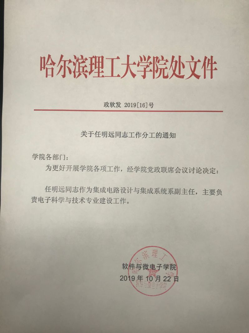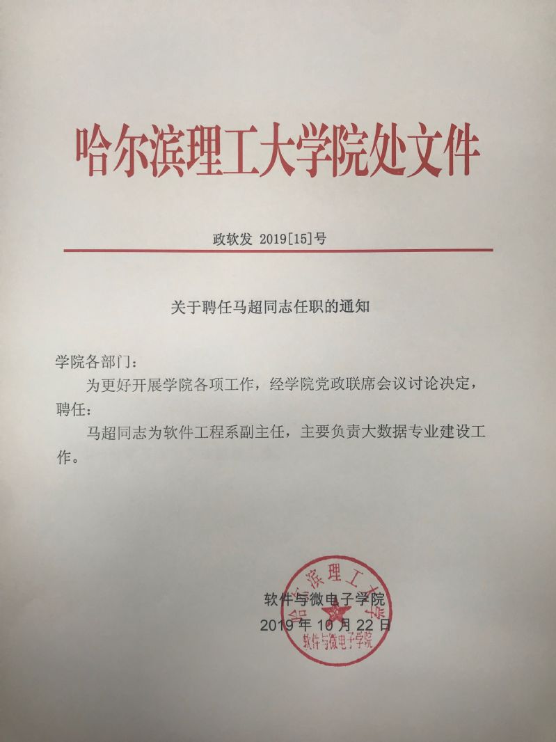 关于文件《关于聘任马超同志任职的通知》、《关于任明远同志工作分工的通知》、《软件与微电子学院国家奖学金评审实施办法(暂行)》的通知