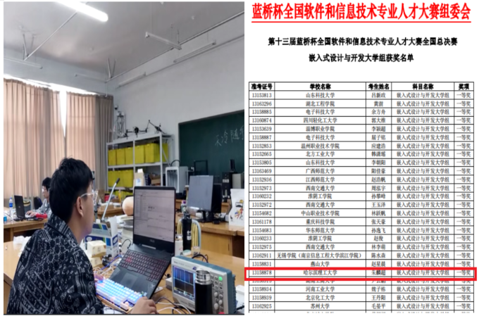 朱麟超同学获得“嵌入式设计与开发大学”全国一等奖