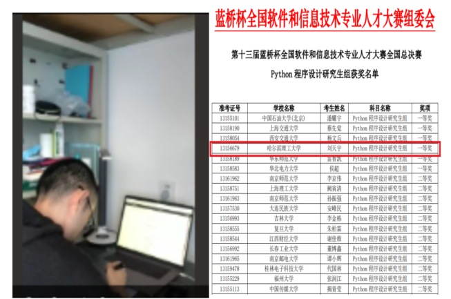 刘天宇同学“Python 程序设计研究生组”全国一等奖