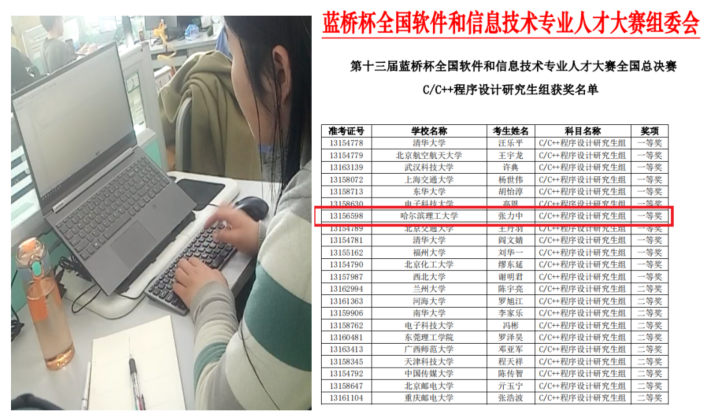 张力中 | C/C++程序设计研究生组 | 一等奖 | 计算机科学与技术21级博士研究生 |
