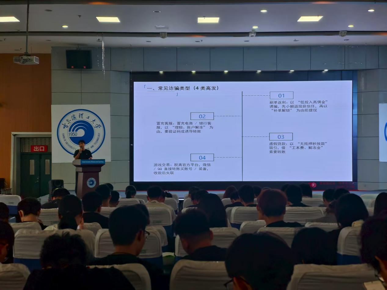 计算机学院2023级辅导员王薪博对2025级新同学进行了安全意识教育,为新生筑牢安全防护网。王薪博老师的讲解内容聚焦新生日常学习生活中的高频安全风险,并结合近两年学院的真实案例,从防范网络诈骗、消防安全、财产安全、网络安全教育和诚信与法律教育等几个方面进行讲解。在网络诈骗方面,重点展示常见诈骗类型和识别诈骗技巧,并建议同学们下载“国家反诈APP”,介绍诈骗举报与求助流程;在消防安全教育方面,向学生们分享近年高校因未注意安全用电和火灾隐患问题引发的事故案例,结合学校宿舍安全住宿管理规定,说明学校在安全用电和防火方面的要求;在财产安全教育方面,主要从寝室防盗和保护个人信息两方面向学生做出安全提示;在网络安全教育方面,提醒学生文明规范上网,并告诫新同学们禁止出现翻墙、黑客入侵、暴力破解等触碰法律红线的行为;在诚信与法律教育方面,提醒学生拒绝学术造假,遵守考试纪律诚信考试。