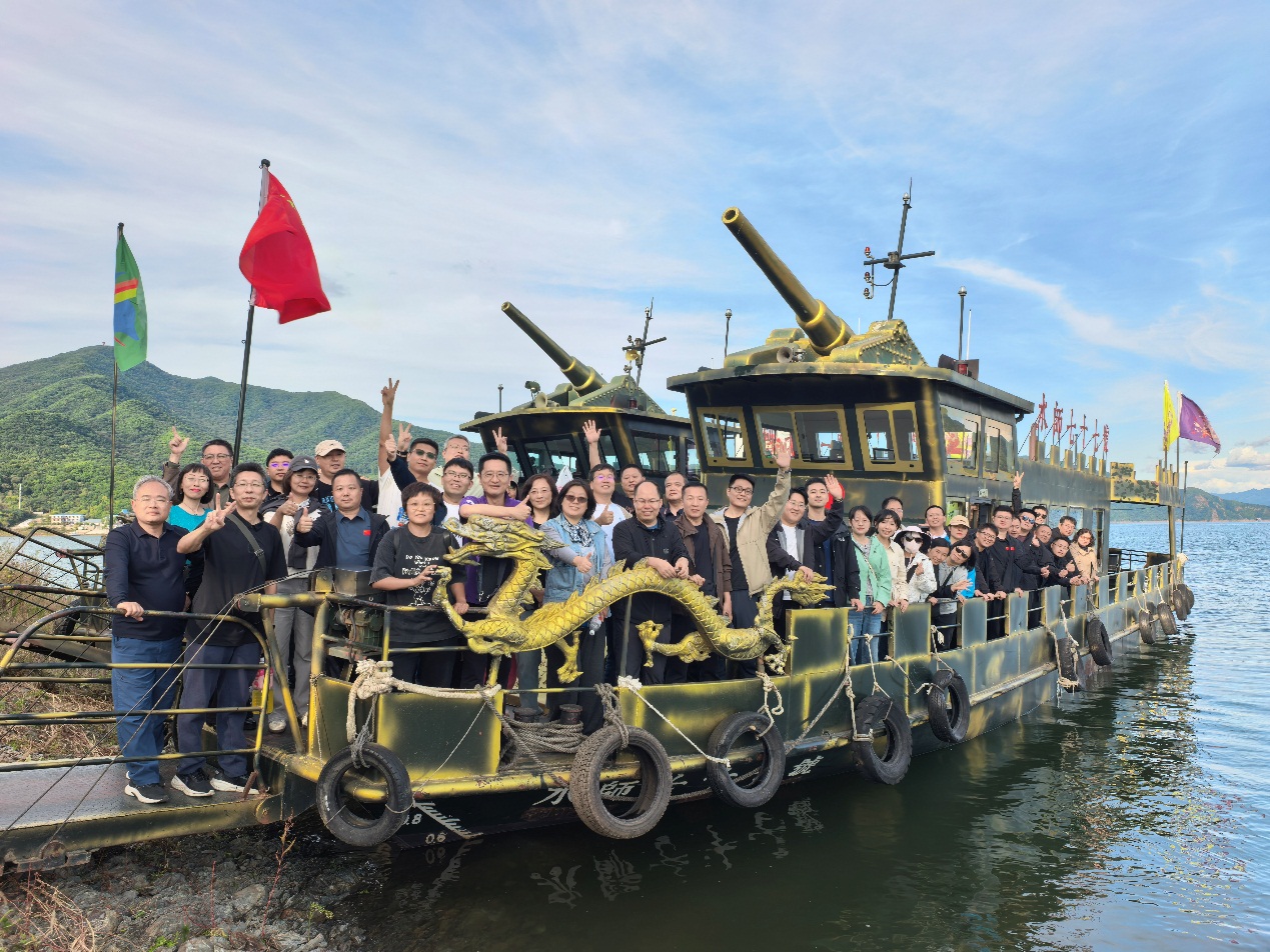 在松花湖景区,教师们沐浴秋日暖阳,领略湖光山色。远观小丰满水电站大坝,坐船登湖中金蟾岛眺望松花湖全景。