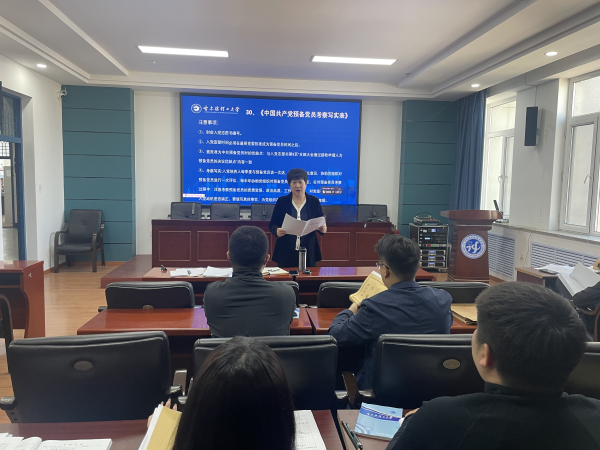 培训由党务辅导员田钰析主讲。她以《中国共产党发展党员工作细则》为根本遵循,紧密结合学校发展党员工作实际,围绕“申请入党、入党积极分子确定和培养教育、发展对象确定和考察、预备党接收、预备党员教育考察和转正”五个关键阶段,系统讲解了各环节的材料撰写规范、程序执行要点及时间节点要求。针对党员发展过程中出现的典型问题,田钰析逐项拆解关键流程、明确注意事项,通过案例剖析强化实操指引,助力各党支部书记精准把握发展党员工作核心。