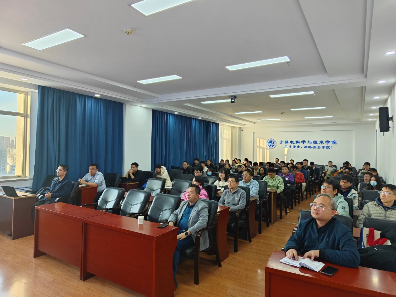 在新主楼E区1523报告厅,王兴伟教授为师生们带来题为“分布式可信知识定义网络”学术报告,计算机科学与技术学院党委书记孙广路、院长黄海、副院长姚登举、校内骨干教师及优秀博士硕士研究生近百人参加会议。会议由副院长姚登举主持。